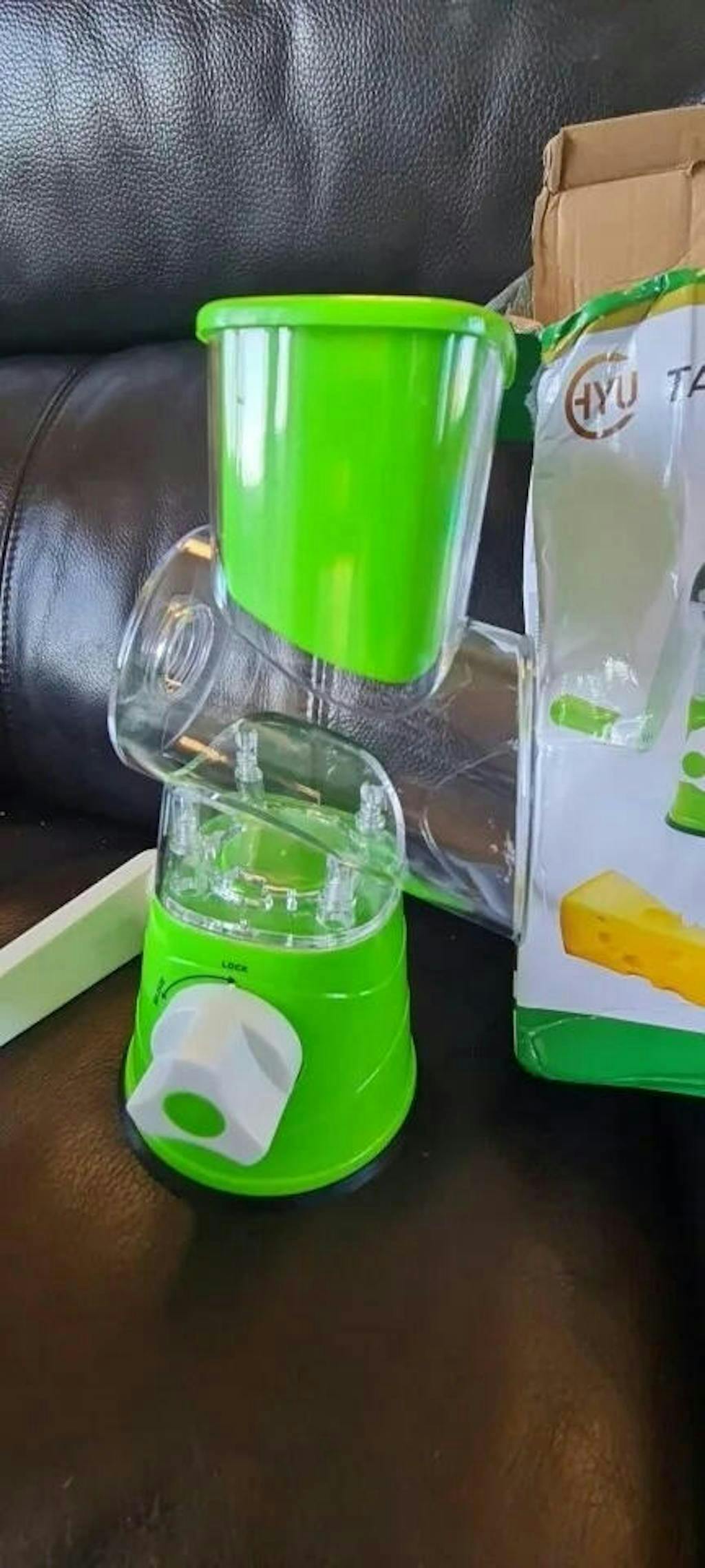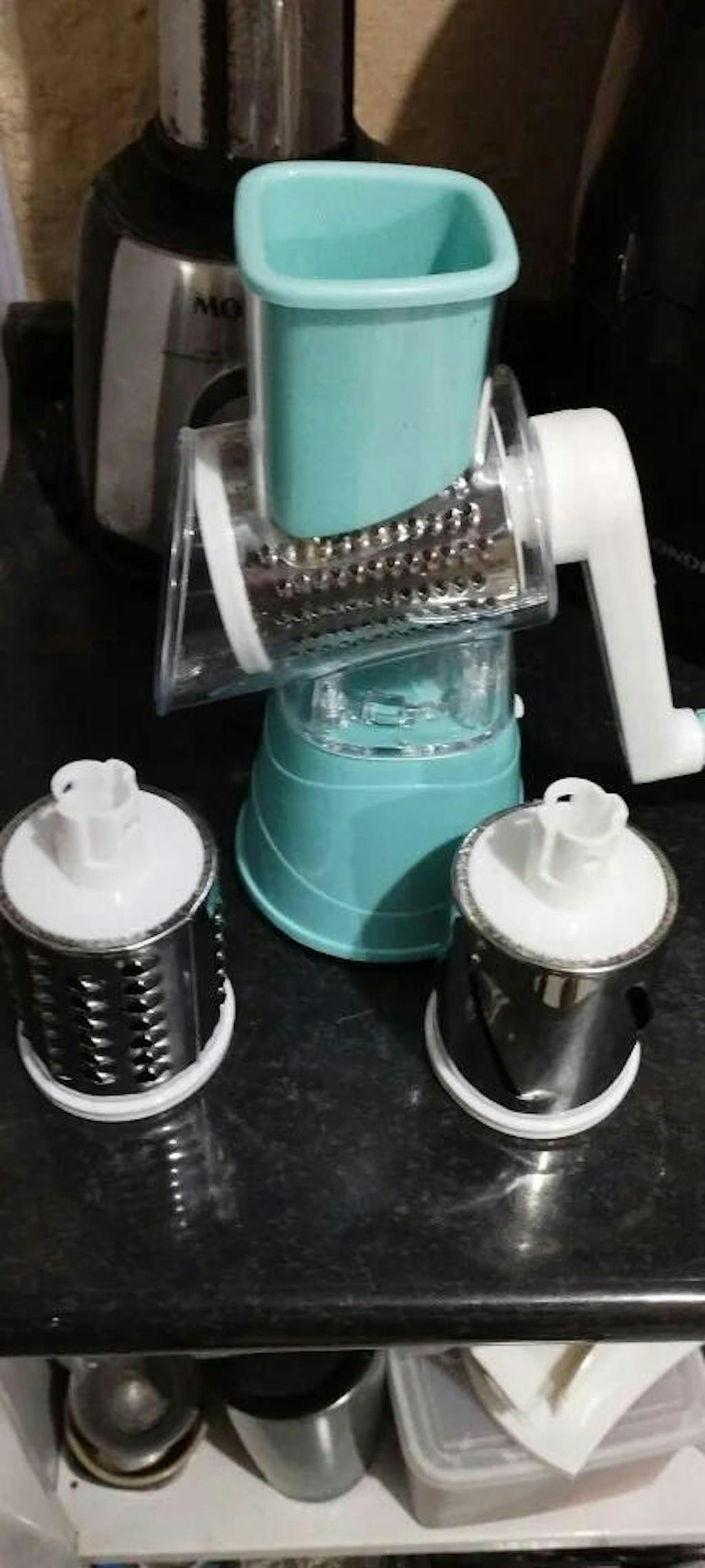 Interchangeable Blades: DealsMall™ comes with three interchangeable cylindrical blades or drums. Each one is used for a different purpose like shredding, slicing, etc. It has three color options, Red, Green, and Blue so you can match it with your taste